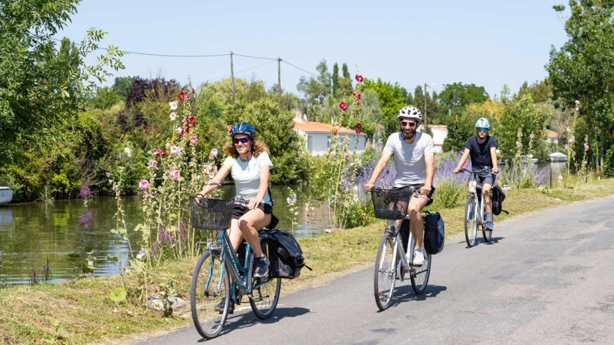En remontant la Sèvre Niortaise vers l’estuaire, c’est une toute autre partie du Marais qui vous dévoilera ses secrets. Dans ce Marais desséché, là où dès le 13e siècle l’homme entreprit des travaux d’assèchement, le paysage est quadrillé de canaux rectilignes qui encadrent de grandes prairies agricoles. L’eau y est pourtant très présente afin de permettre l’irrigation des cultures, maîtrisée par des digues, portes à flot et écluses. Cette partie du marais était autrefois parsemée d’îles calcaires qui ont servi à dresser des villages tels que Marans. Lors d’une très agréable balade sur son port de plaisance, vous sentirez déjà l’océan tout proche. Pourquoi ne pas poursuivre votre périple à vélo en partant sur les circuits aménagés et balisés qui bordent le canal Marans-La Rochelle. Le Marais Poitevin, traversé par la Vélo Francette® est, sans conteste, le royaume du vélo… comme celui des oiseaux ! La Baie de l’Aiguillon qui relie le marais et la mer constitue une réserve naturelle convoitée par les oiseaux migrateurs. À la Pointe Saint-Clément, postez-vous au sommet d’une falaise calcaire pour les observer rejoindre la vasière. La Baie est également renommée pour ses fameuses moules de bouchots dont la culture vous est expliquée à la Maison de la Baie du Marais Poitevin à Esnandes. Au pays du Marais Poitevin, les papilles frétillent… en dégustant les moules de Charron, les œufs roux de la poule de Marans, la galette charentaise avec de l’angélique confite ou le bon beurre de Surgères… Ville laitière au succès incontestable, Surgères se découvre aussi le temps d’une balade historique ou du Surgères Brass Festival.